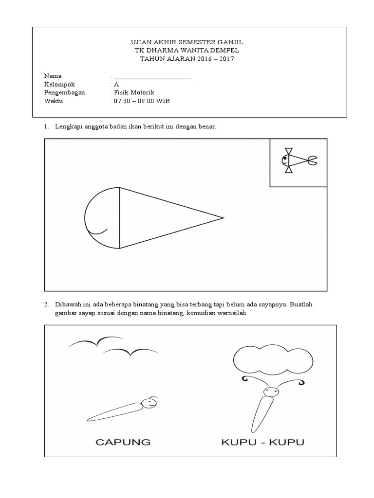 Soal Ujian Tk A Fisik Motorik from imgv2-1-f.scribdassets.com Program semester kurikulum 2013 paud tk b umur 5 6 tahun. Soal latihan semester genap diniyah. Kumpulan soal pelajaran 3 soal anak tk b semester 2. Latihan soal tk kka sesi 2 silabus. Soal ujian tk a fisik motorik. Berikut ini merupakan beberapa contoh soal kelas 4 tentang matematika untuk membantu anak anak dalam belajar matematika. 5 soal un matematika sma ipa 2017 dan. Evaluasi pembelajaran sangat diperlukan untuk semua jenjang termasuk pada pendidikan anak usia dini (paud).